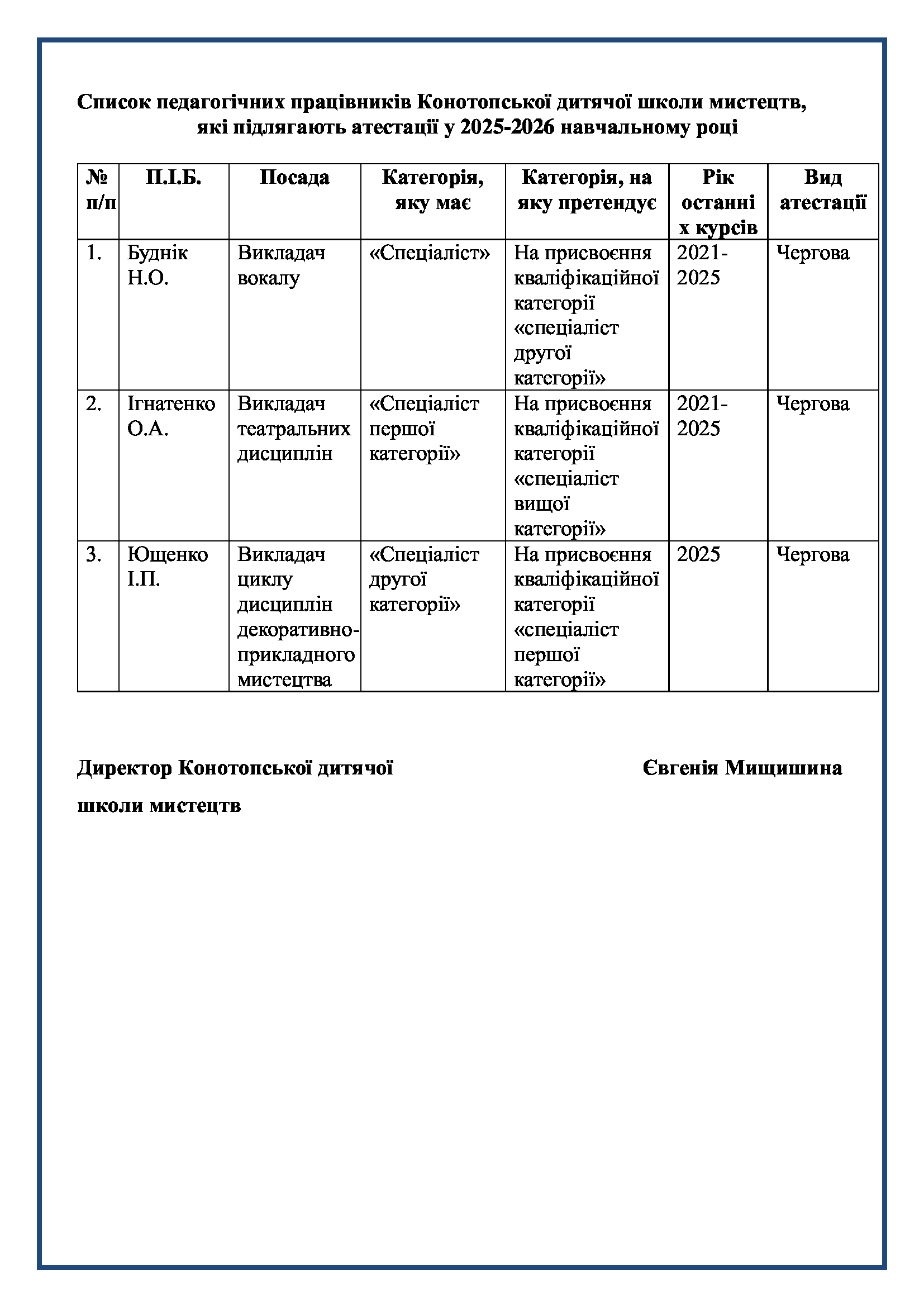 Список педагогічних працівників, які підлягають атестації у 2026 році