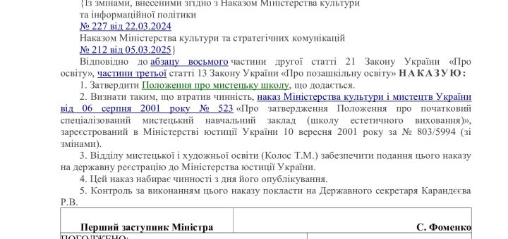 - Школа мистецтв є юридичною особою, має печатку, штамп, а також інші атрибути юридичної особи відповідно до законодавства України.
